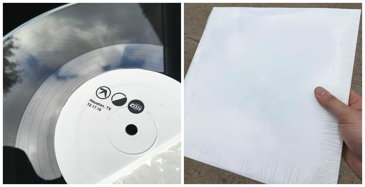 Помимо фирменных футболок и постеров на мерч-столике AFX можно было приобрести white-label винил: 12-дюймовая пластинка в белом конверте не содержит никакой другой информации, кроме фестивальной даты в компании логотипов Warp Records и AFX. Представители лейбла подтвердили, что пластинка настоящая, но от дальнейших комментариев воздержались. Известно, что релиз включает два трека: архивный ли это или новый материал, пока неясно.