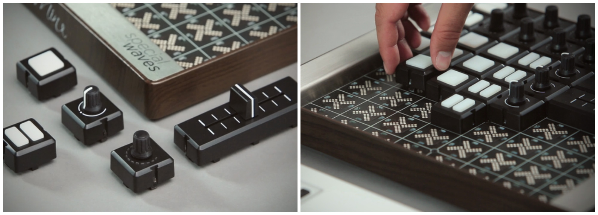 Компания Special Waves запустила сбор средств для запуска в производство нового модульного MIDI-контроллера Mine, который можно собирать в разных конфигурациях. В основе идет базовая панель, к которой подключаются 5 видов модулей на магнитном креплении: RGB-пэд, двойная RGB-кнопка, потенциометр с подсветкой делений, энкодер с подсветкой и 60-миллиметровый фейдер.