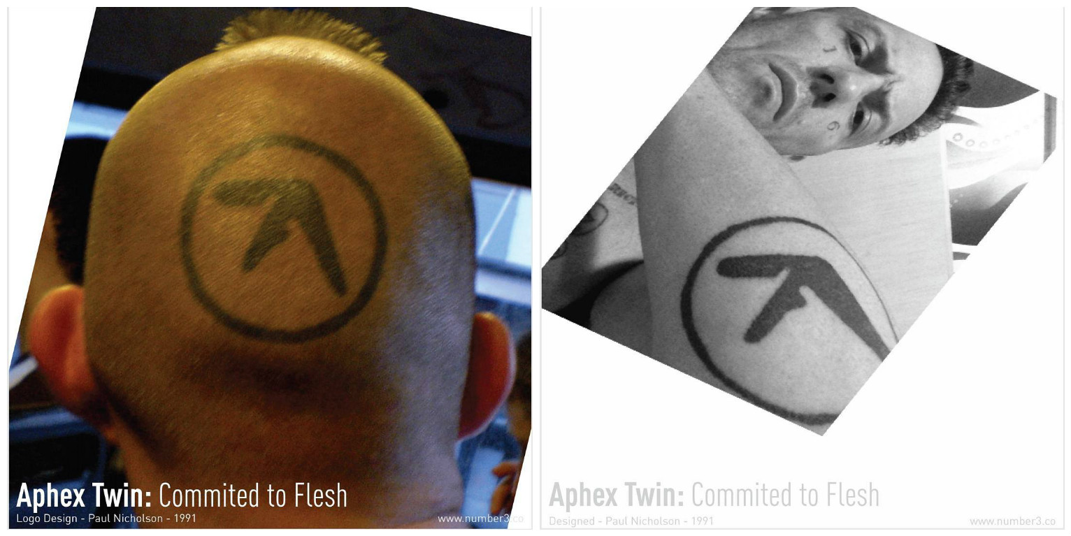 Помимо графических скетчей, дизайнер также собрал коллекцию фанатских татуировок с логотипом. Например, среди обладателей можно обнаружить Ninja из Die Antwoord. Несколько примеров черновиков Николсона и AFX-тату смотрите ниже, больше — в инстаграме дизайнера.