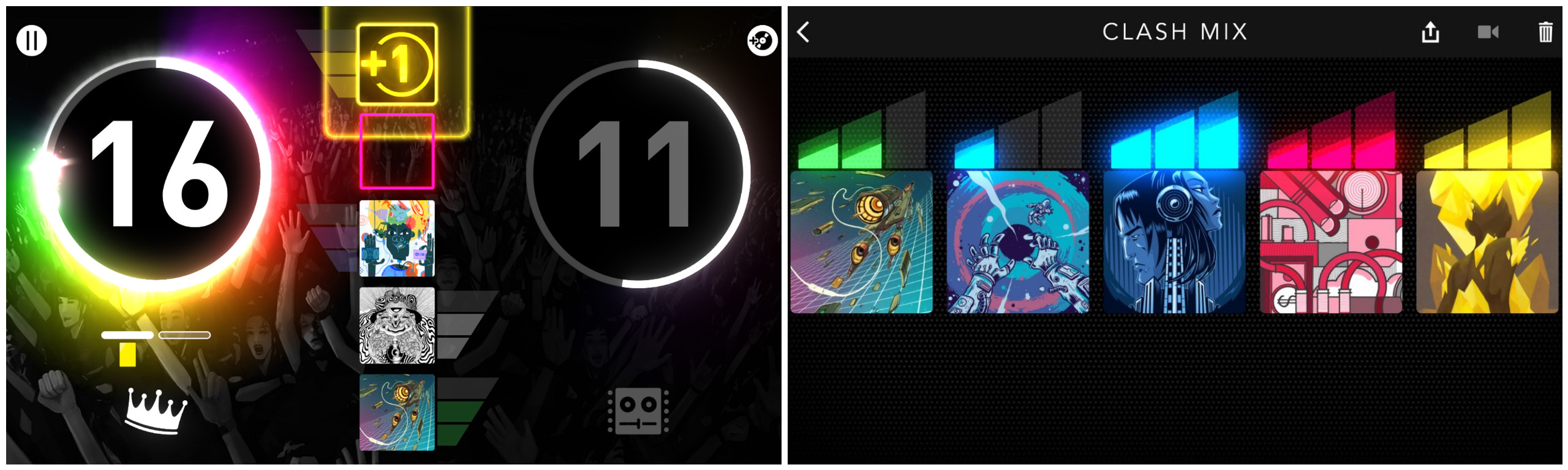 В Dropmix нужно подбирать и микшировать семплы из популярных песен — для этого выбирается до пяти карт с разными элементами (вокал, бас и так далее), которые размещаются в выбранном порядке в ячейках базы, «сводящей» их вместе. За подсчет очков, сохранение и публикацию готовых мэшапов отвечает приложение. В наборе треки из Топ 40, например, 24K Magic Bruno Mars и Can’t Feel My Face The Weeknd, а также EDM-хиты вроде Bangarang Skrillex, Take Over Control Afrojack, Closer The Chainsmokers и Barbra Streisand Duck Sauce. Создатели обещают, больше 300 музыкальных карт.