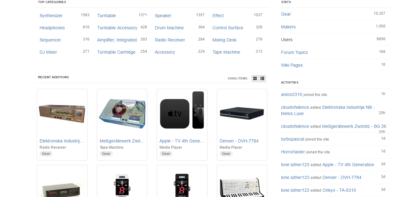 По аналогии с основным сайтом, маркет был изначально представлен публике как открытая база данных, а теперь готов предложить опцию покупки и продажи. Как и родительская площадка, которая является самым большим в мире каталогом музыкальных релизов (как сориентироваться в библиотеке, которая насчитывает больше 8 миллионов позиций), Gearogs претендует на статус «самой большой базы данных музыкального оборудования на планете». Миссия проекта звучит следующим образом: «С вашей помощью мы задокументируем каждую вертушку, стереосистему, усилитель, педаль эффектов, микрофон, и любой другой музыкальный девайс из когда-либо выпущенных. Это место для любого оборудования, которое записывает, усиливает, микширует и воспроизводит аудио».
