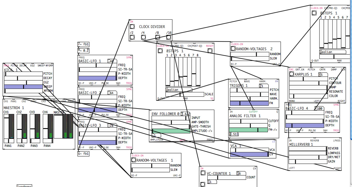 Модульный ренессанс в музыке привел к повышенному интересу к подобным системам, но высокая стоимость сетапов ограничивает их доступность. Долгое время единственным вариантом была виртуальная студия Reaktor от NI — конечно, программная версия не может полностью заменить тактильность и характер инструмента, но позволяет добиться схожего звука. Ситуация понемногу меняется в сторону свободы выбора и большей доступности, например, недавно была представлена виртуальная версия легендарных модульных систем Buchla, которые известны высокой ценой и штучной доступностью.