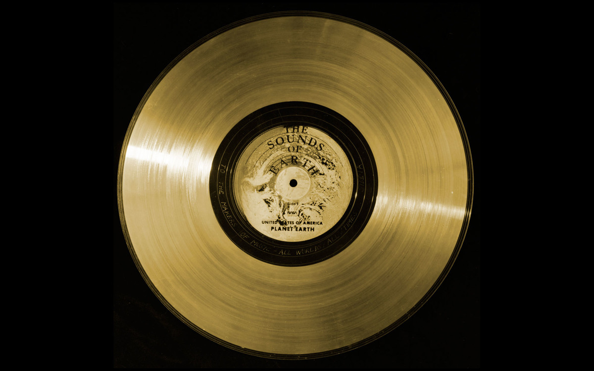 В 1977 году две межпланетные станции, Вояджер-1 и Вояджер-2, были запущены с Земли для изучения космического пространства. Оба аппарата до сих работают и передают ценную информацию, хотя Вояджер-1 еще в сентябре 2013-го покинул пределы Солнечной системы, став первым в истории объектом, преодолевшим такое расстояние. На борту двух станций содержится специальная позолоченная пластинка с записями звуковых и видеофрагментов. Составлением этой пластинки занимался известный астроном и популяризатор науки Карл Саган. Саган тогда объяснял, что концепция сродни «послания в бутылке», только в открытом космосе. Компиляция изображений и музыки, документирующей существование человечества.