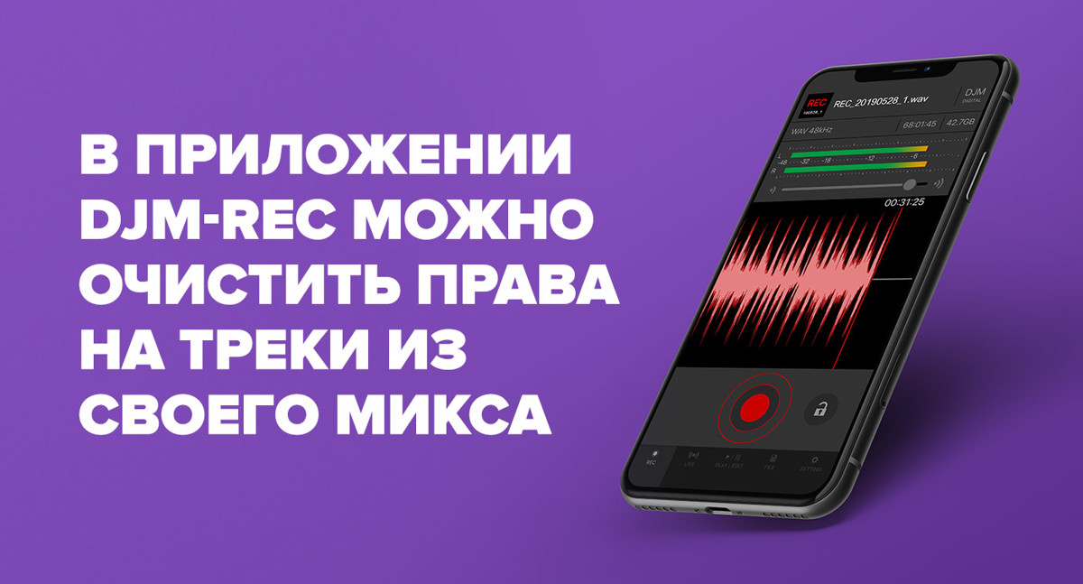 Довольно известное приложение DJM-REC от Pioneer для записи миксов на iOS-устройства теперь позволяет анализировать файл, определять треки и очищать на них авторские права. Таким образом микс становится лицензированным и его можно легально загружать на стриминговые сервисы, такие как Apple Music или Spotify.