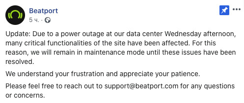 Проблемы с сервисом начались 18 декабря: не открывались многие страницы релизов, пользователи не могли попасть в свои учетные записи, а через какое-то время перестала загружаться и главная страница. В данный момент на сайте открывается только заглушка, сообщающая о том, что проводятся работы, и сервис скоро вернется. Однако когда именно это произойдет, в Beatport не знают.
