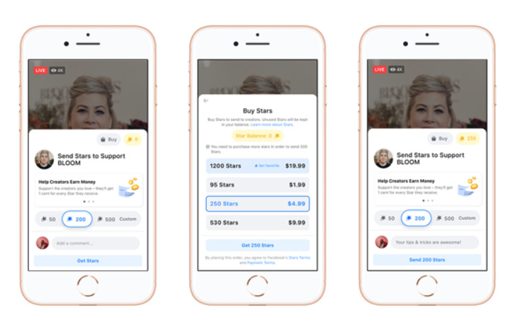 В то время как Facebook часто прерывает или блокирует трансляции с диджей-сетами и отключает в них звук, есть в системе стримов на этой платформе и позитивные подвижки. Стало известно, что Facebook усовершенствует трансляции с помощью механики «звезд». Она аналогична таковой у Twitch: во время прямого эфира зрители могут покупать и дарить «звезды» автору, таким образом материально поощряя его.
