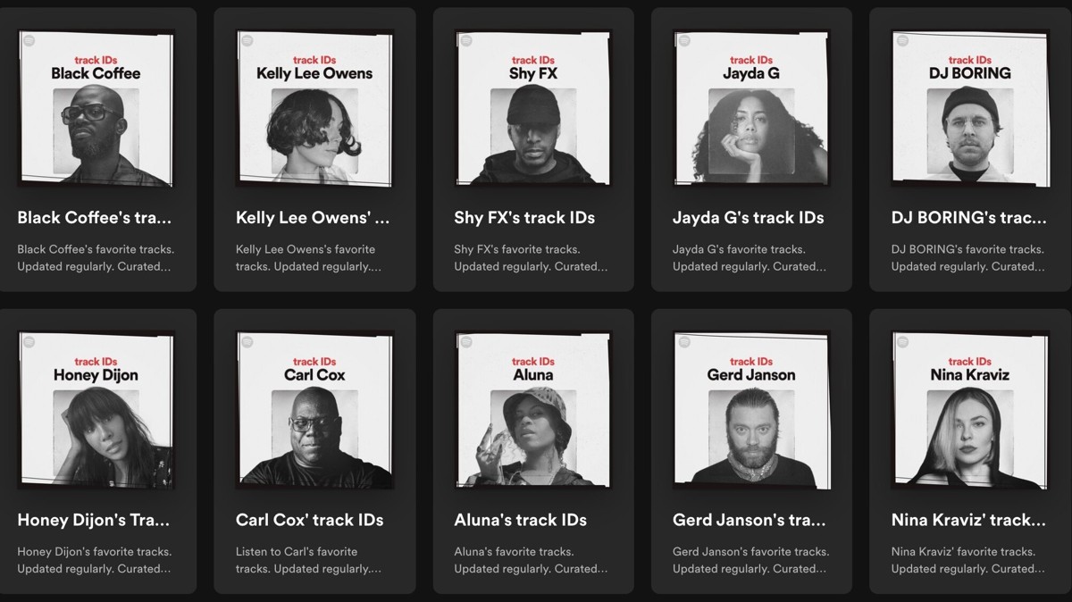 Нашелся еще один повод обратить внимание на Spotify. На площадке запустили курируемые известными диджеями плейлисты с ироничым названием Track IDs (словосочетание, которое можно найти в комментах под любым мало-мальски прослушиваемым миксом или сетом с просьбой найти название того или иного трека).