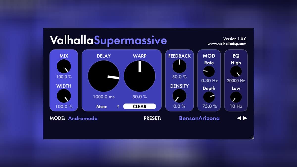 Valhalla Supermassive создает пространственные и объемные эффекты, смешивая воедино сразу десятки разных задержек. Благодаря возможности модуляции плагин также работает и в качестве фленжера или хоруса. Интерфейс не перегружен деталями и достаточно эргономичен.
