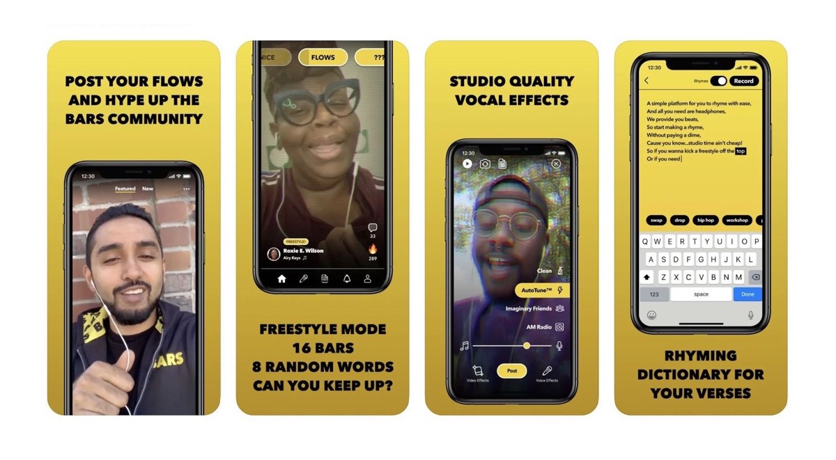 Bars располагает каталогом готовых битов, поверх которых можно читать рэп, а на голос накладывать «фильтры» (вроде звуковых эффектов или автотюна). Далее ролики длиной не больше минуты попадают в ленту, где их оценивает аудитория.
