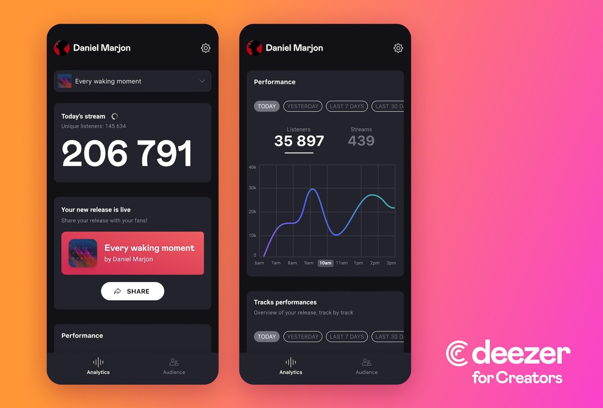 «Данные часто могут быть сбивающими с толку. В новом приложении всё это представлено в удобном для чтения формате, который поможет вам спланировать свой следующий шаг, будь то улучшение текущих результатов или запуск крупного релиза», — Фредерик Антельм, руководитель отдела контента Deezer