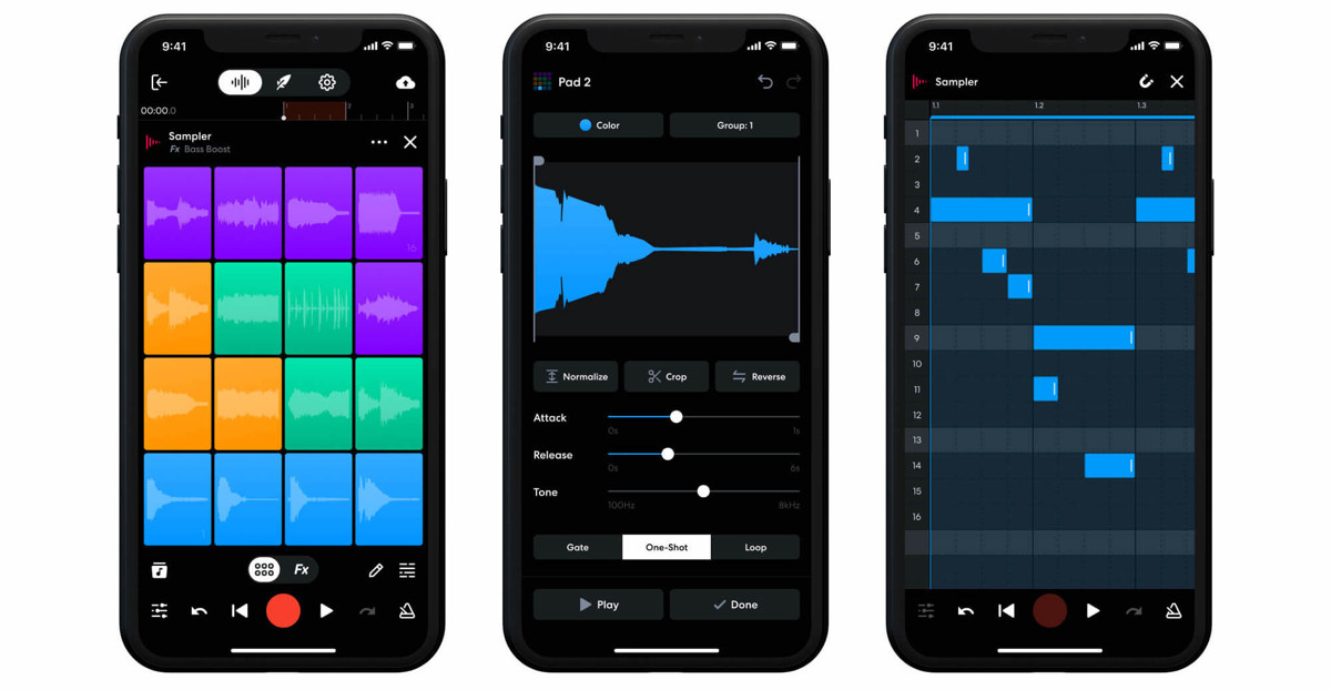 • Одним из важнейших нововведений стал семплер с возможностью записи, импорта и с доступом к собственной библиотеке сервиса, в которой на данный момент 15 000 royalty-free семплов в разных жанрах. Для любого звука предусмотрено быстрое меню с настройкой громкости, высоты и стереопанорамы. Можно применять нормализацию, редактировать и обрезать семплы, регулировать атаку, спад и тембр.