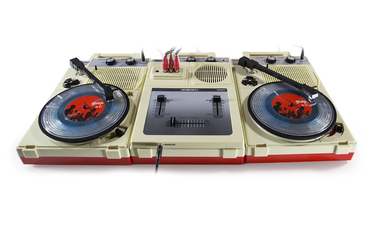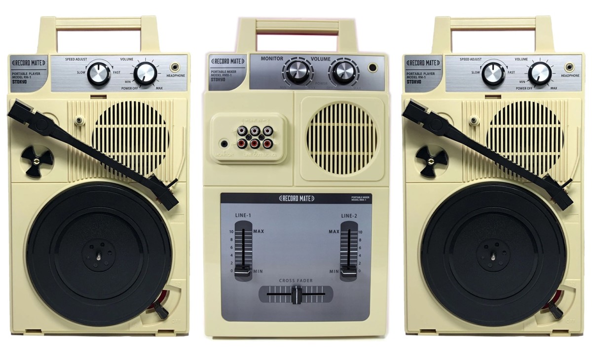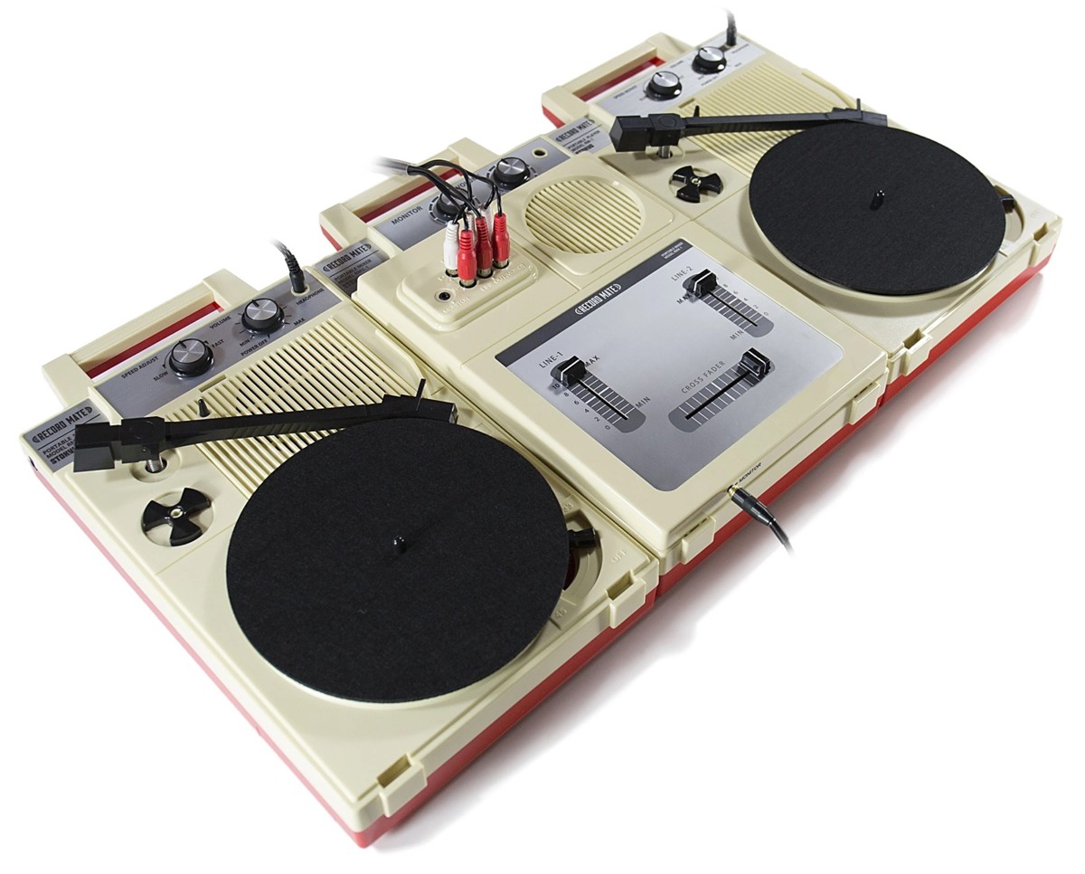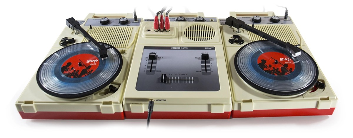 Переносные вертушки для этого существуют уже не один десяток лет — можно вспомнить практически игрушечные и абсолютно убогие проигрыватели Fisher-Price, которые были первыми у многих знаменитых диджеев и музыкантов еще в детстве. Выпускаются портативы и сейчас (и даже находятся на некотором подъеме). Но вот полноценный диджейский сетап в таком формате вспомнить не так просто. Как нельзя кстати подсуетились японцы. Обычно они помешаны на качестве и хай-энде, но должен же маятник качаться и в другую сторону. Так появился набор Complete DJ Set от компании Stokyo.