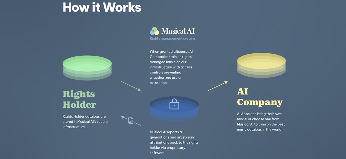 Стартап разработал платформу, призванную помочь правообладателям, музыкантам и лейблам получать роялти за лицензирование их музыки со стороны компаний, использующих генеративный ИИ. Платформа обеспечивает хранение каталогов правообладателей и предоставляет ИИ-компаниям доступ к лицензированным данным для обучения их моделей, одновременно с этим контролируя несанкционированное использование и обеспечивая прозрачное распределение доходов. Плюс система анализа Musical AI точно определяет исходный материал треков, созданных ИИ.