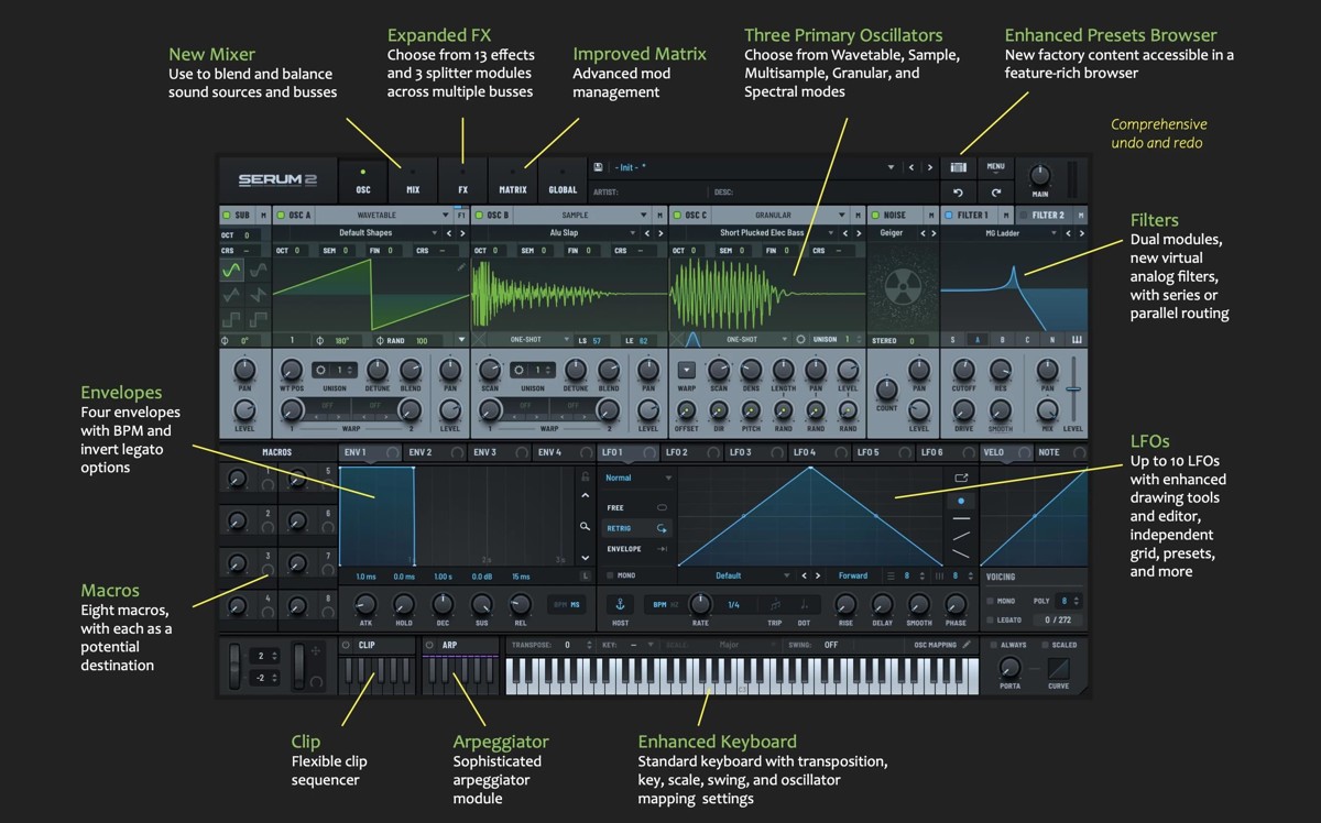 В первую очередь, изменения в Serum 2 коснулись функциональности и возможностей синтеза.