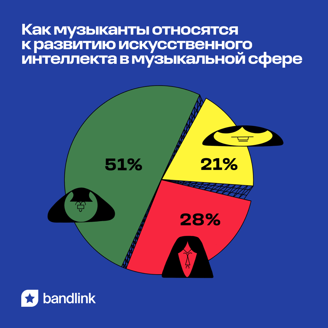 Согласно недавнему исследованию BandLink (сервис Яндекса), многие продюсеры и авторы музыки доверяют ИИ и так или иначе используют подобные инструменты. Некоторые даже согласны отдать нейросетям весь творческий процесс — но таких меньшинство.