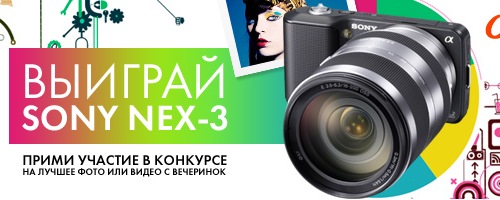 Новая Sony NEX-3 — это самая маленькая и самая светочувствительная цифровая камера со сменным объективом и молниеносной реакцией. С ней можно не только делать фото потрясающего качества, но и записывать видео в формате full HD со стерео звуком. Хочешь получить ее? Запомнить все самое главное? Тогда снимай видео и фото с вечеринок, отправляй на конкурс «Лучшее клубное фото и видео» и выиграй Sony NEX-3. Видео и фото будут оцениваться раздельно. Десять финалистов будут отобраны членами компетентного жюри, а победитель будет определен голосованием.
