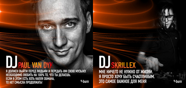 Энергетический напиток burn снова зажигает звук! Вот уже второй год подряд burn дает российским поклонникам электронной музыки уникальный шанс: в открытом интернет-голосовании российские фанаты выбирают лучшего диджея мира, а burn привозит победителя в Москву в рамках масштабного музыкального фестиваля burn® dj!