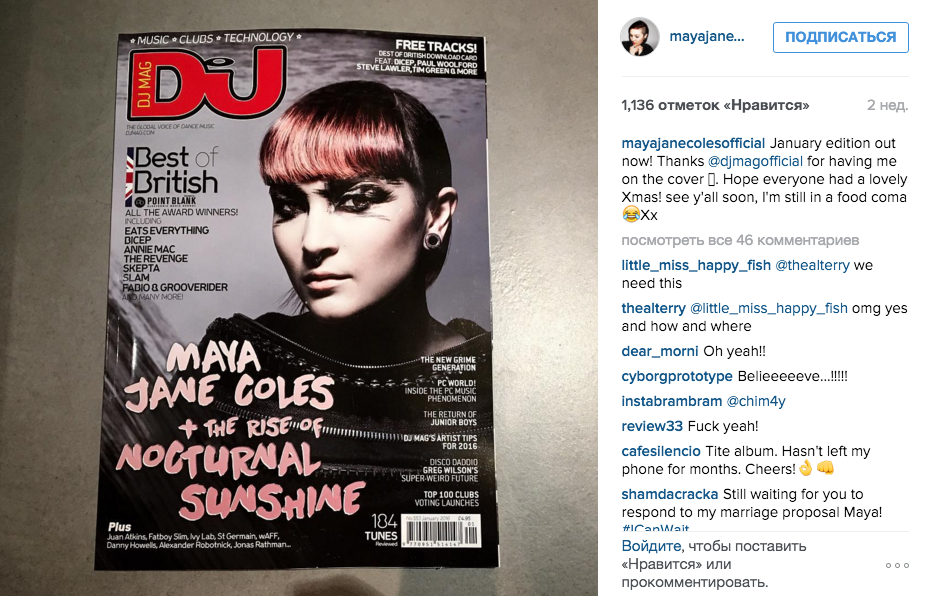 Весь прошлый год Майя Джейн Коулз активно работала над сайд-проектом Nocturnal Sunshine, чье звучание скорее ориентировано на бэйс-музыку и британский дабстеп. Давние поклонники Майи справедливо уточнят, что когда-то Nocturnal Sunshine был ее основным проектом, однако коммерческий успех и всемирная слава для нее начались именно с выступлений под собственным именем.
