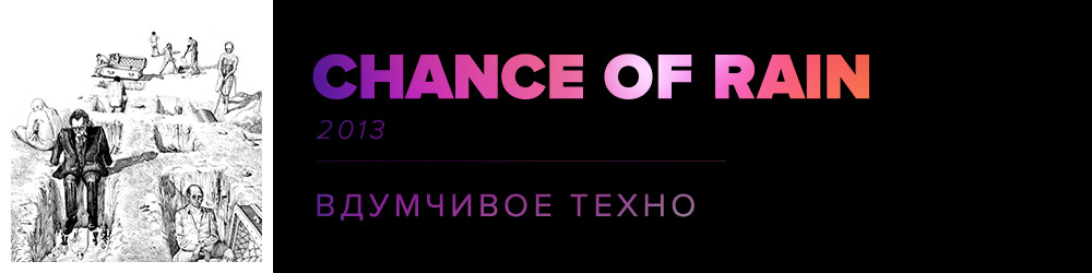 Chance Of Rain — «настроенческий» танцевальный альбом. Вот только в нем нет каких-то доминирующих «крупных» настроений вроде радости, сексуальности, раскованности. Эта музыка транслирует более тонкие эмоции и ощущения, необязательно «позитивные», но при этом подчиненные ритму. Ритм — мощная сила, которая меняет восприятие времени и пространства. Когда ты по-настоящему чувствуешь ритм и находишься в этом моменте, все остальное растворяется и отходит на второй план. Таким образом можно перехитрить время и заставить его работать на себя. Просто слиться с музыкой, остаться наедине с мыслями — вот чему учит Chance Of Rain.