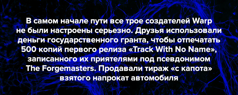 Warp Records стартовали в начале 90-х, в то самое время, когда другие инди-лейблы массово закрывались. Компанию придумали трое единомышленников (Стив Бекетт, Роб Митчелл и Роб Гордон) в подсобном помещении Fon в Шеффилде.